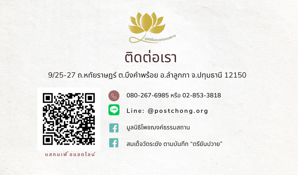 The Postchong Dhammasathan Foundation is a non-profit organization operating for the benefit of the public, without seeking profit or personal gain for any individual, entity, or organization.