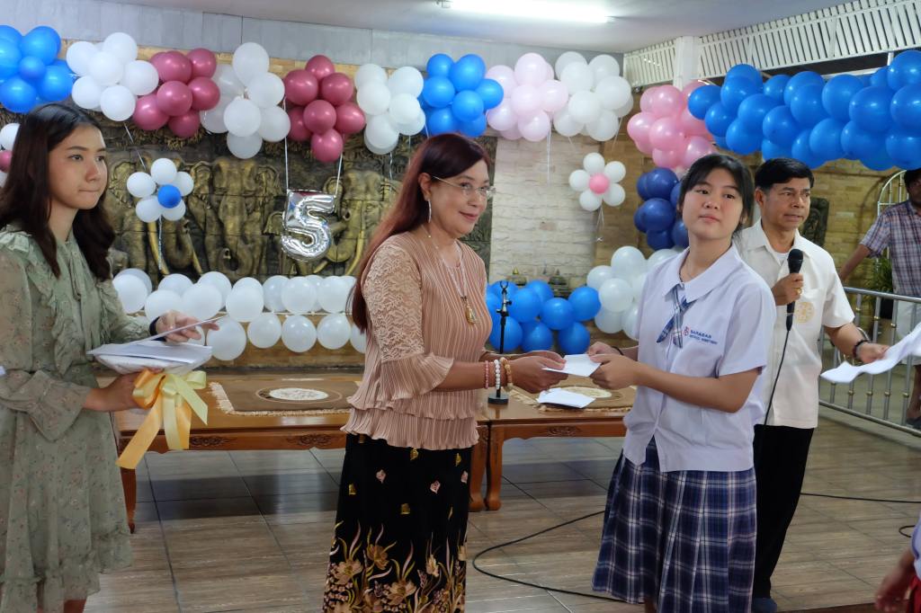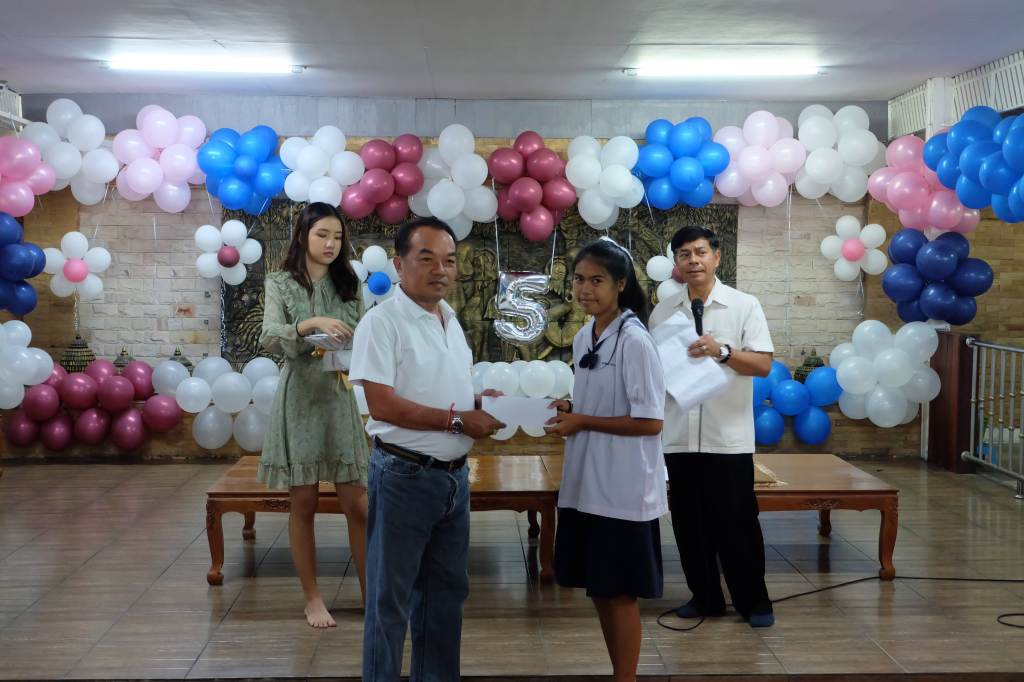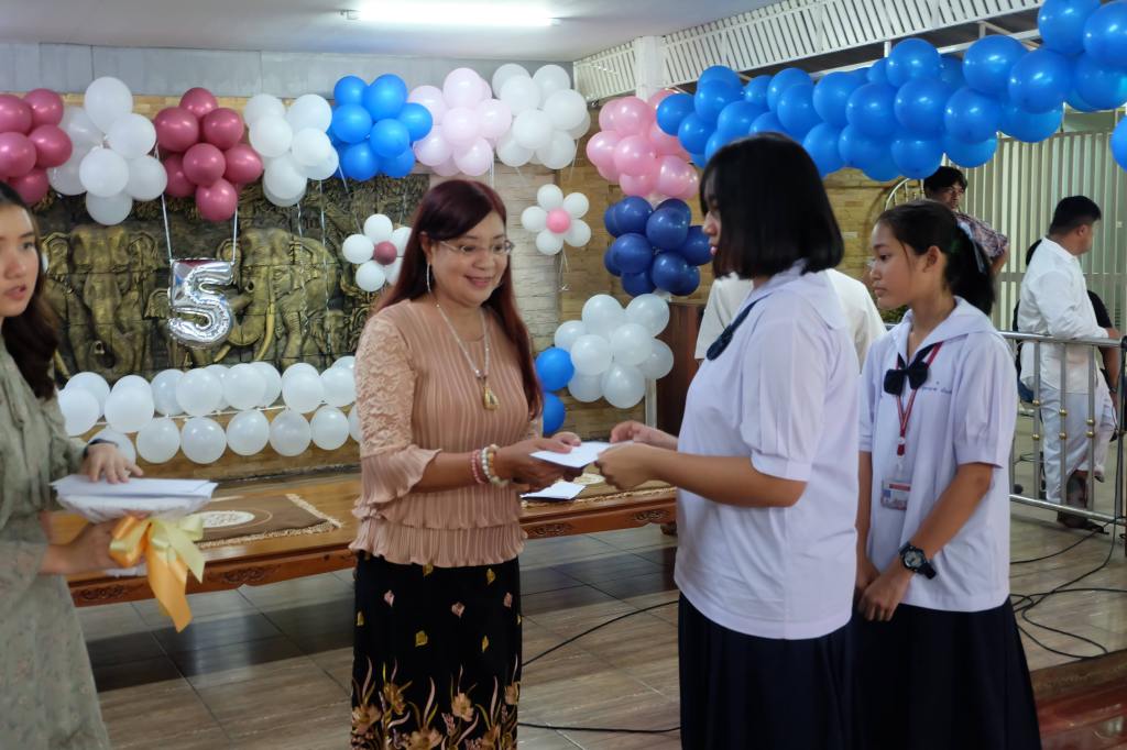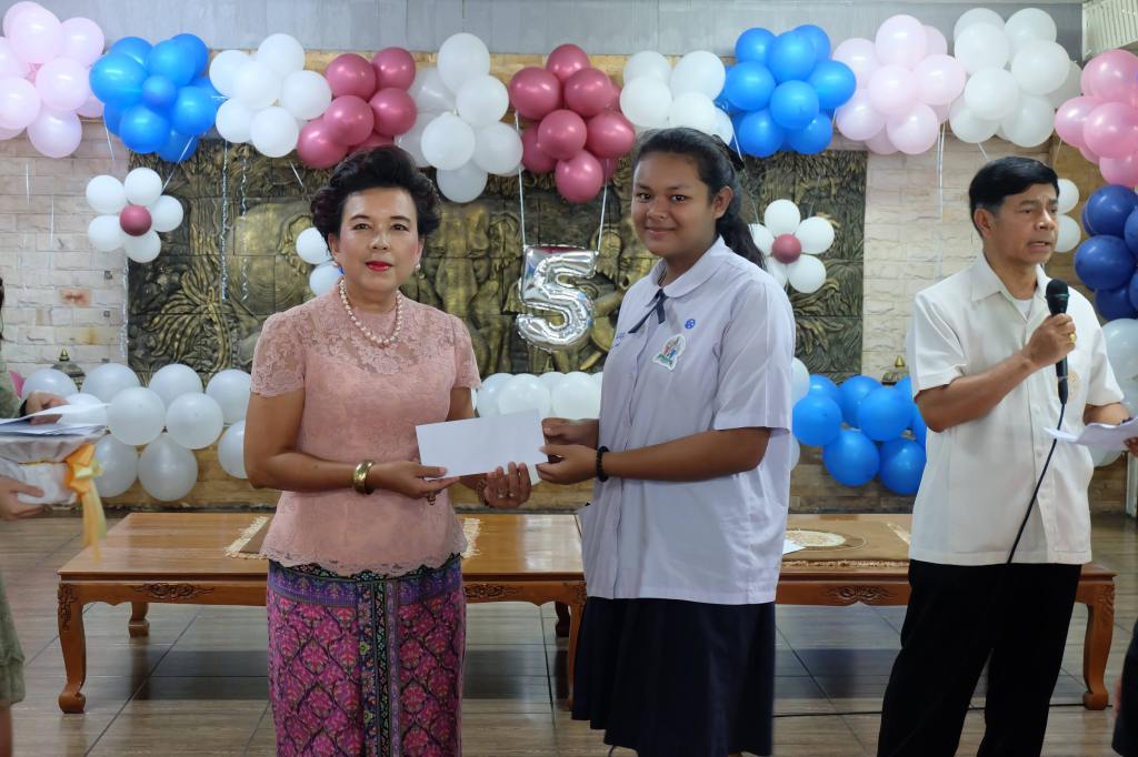 3. มอบอุปกรณ์การเรียน และทุนการศึกษาจำนวน 400 ทุน แก่โรงเรียนจำนวนทั้งสิ้น 5 โรงเรียน ได้แก่