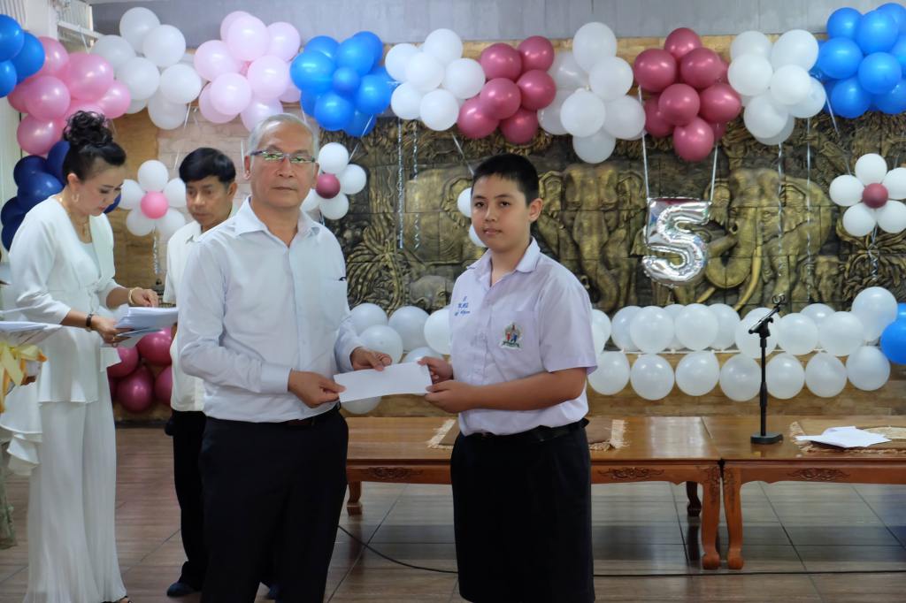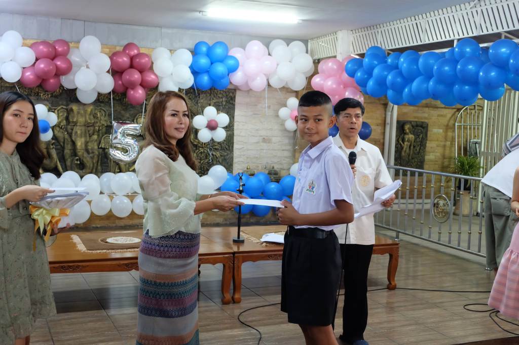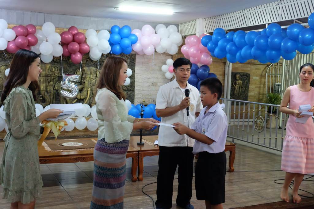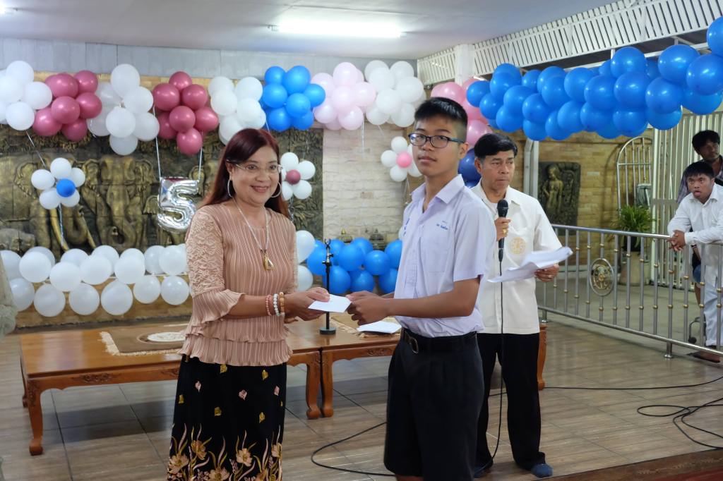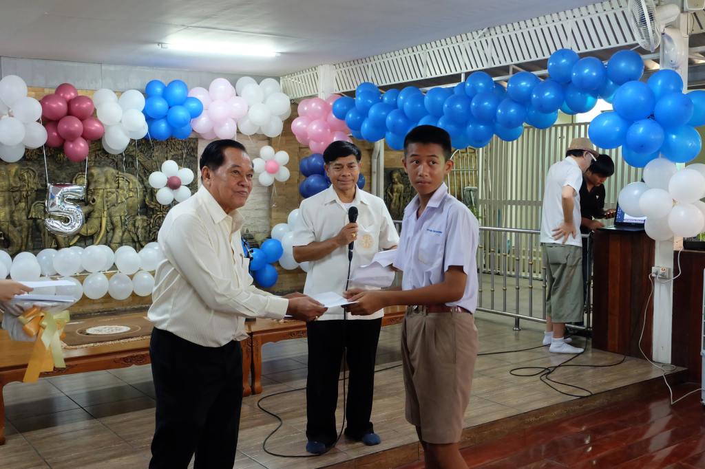 3. มอบอุปกรณ์การเรียน และทุนการศึกษาจำนวน 400 ทุน แก่โรงเรียนจำนวนทั้งสิ้น 5 โรงเรียน ได้แก่